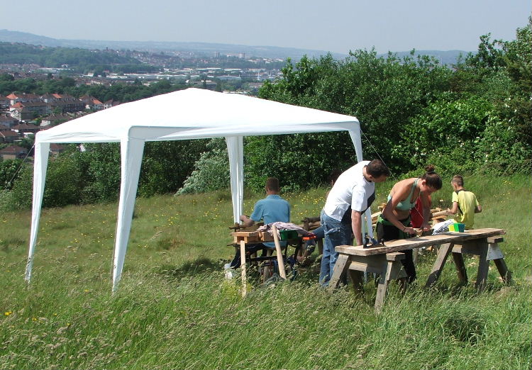 One of our new benches was made on 9th June 2006 at a work shop for participants in a local Youth Inclusion Project based at Barton Hill Settlement. The event was organised by the Groundforce Project that aims to encourage residents of the New Deal Area (Redfield, Barton Hill, Lawrence Hill and The Dings) to use and improve thier local green spaces.