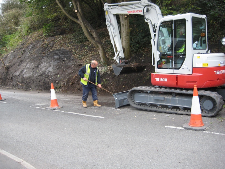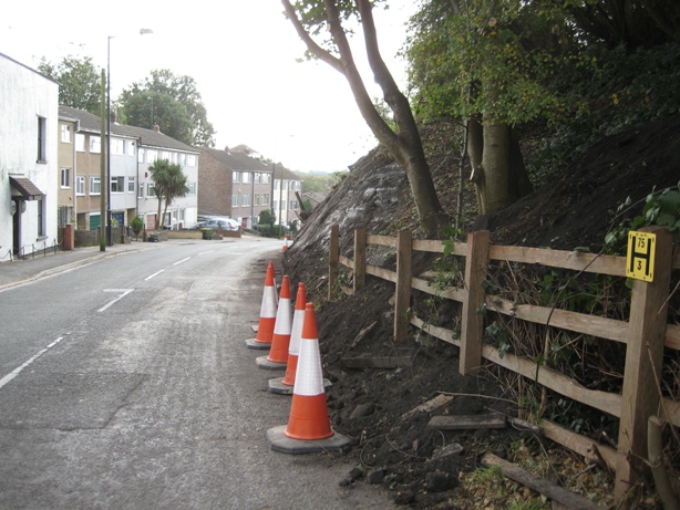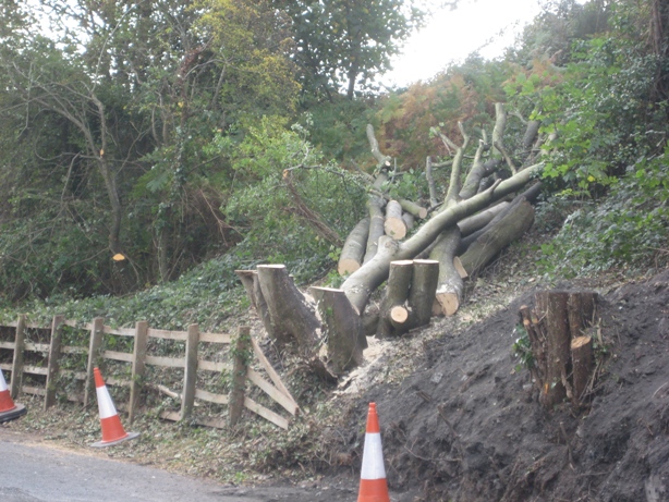 problems of over-hanging trees and earth falls along Troopers Hill Road.