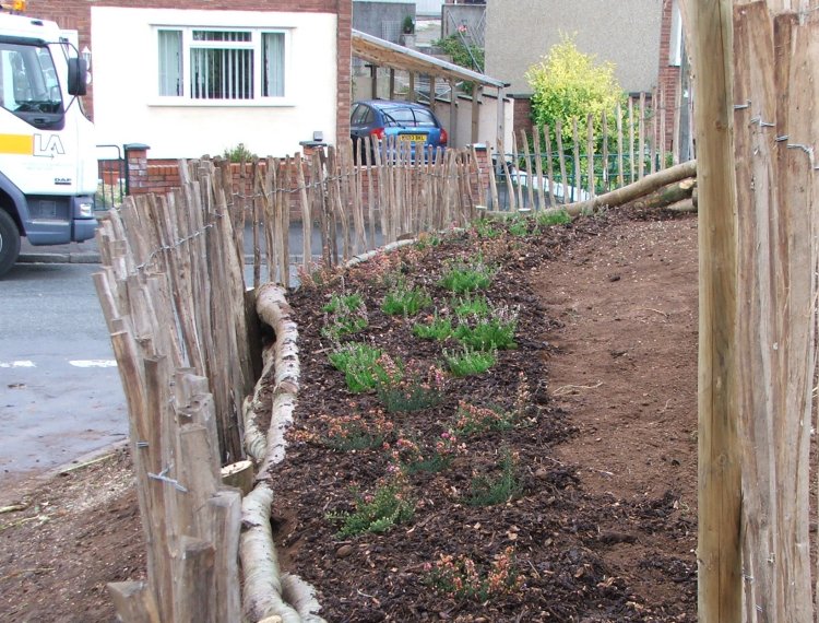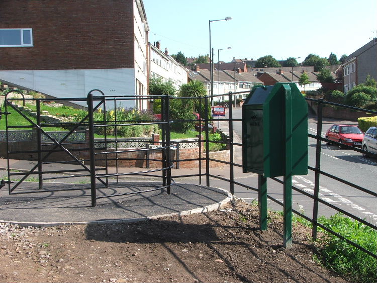 The original design brief that we prepared can be seen here. Given the topography of the hill it is obviously not appropriate to provide wheelchair access, but the new ramp and gate will make access easier and safer for all - especially parents with child buggies. The rotting wooden fence has been replaced with steel 'estate' type fencing. The final works, constructing and planting a bed with shrubs and some heather was completed in Autumn 2010, this was delayed from the Spring because of the unusually dry weather.