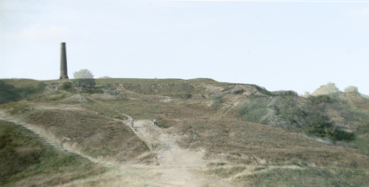 In a lot of respects this photo of the central part of the hill shows how little things have changed since the 1950s. The gorse wasn't present and nor were the trees below and to the left of the chimney. The area of bare soil is remarkably similar.