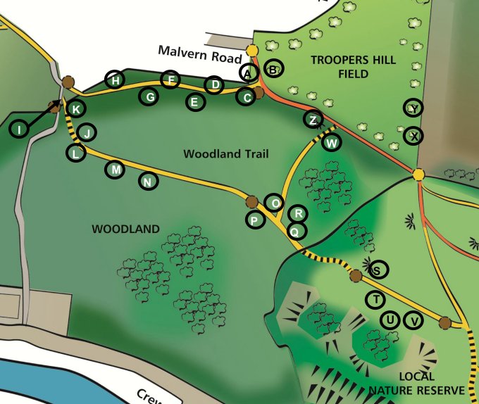 We have labelled various trees in Troopers Hill Woodland to form a trail that you can follow learning more about the trees as you go.