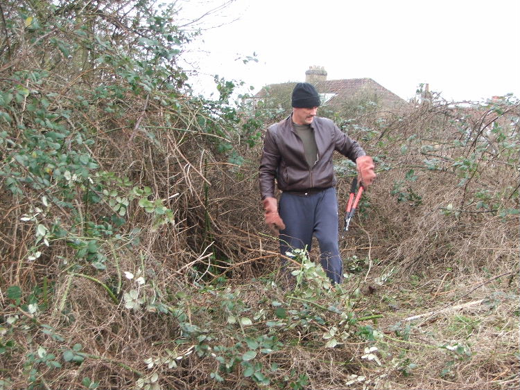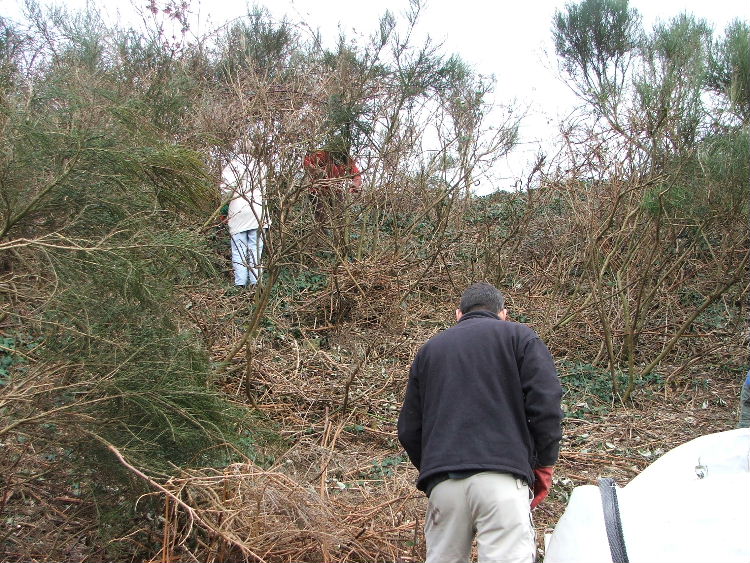 While some of the group cut the bramble..