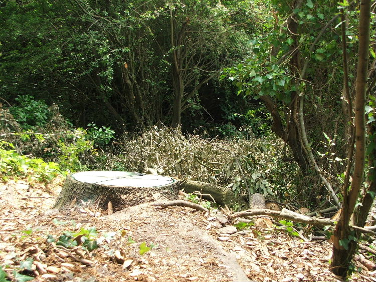 This is the remains of the large Holm Oak in Crews Hole Woodland that was felled by Bristol Parks' contractors. Hopefully the number of Holm Oak saplings appearing on the hill will now be reduced. This is a great example of Bristol Parks and Friends of Troopers Hill working in partnership.