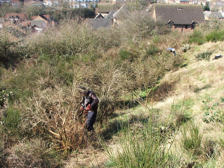 The broom will soon give us a display of yellow flowers to repay our efforts for clearing the bramble.
