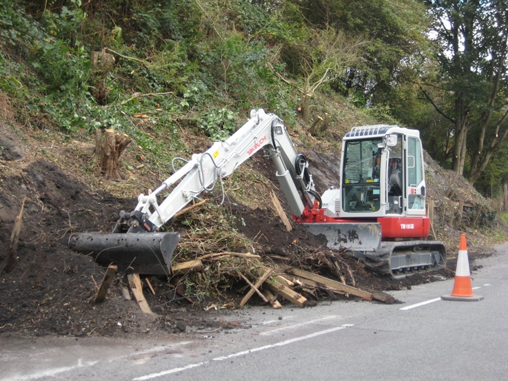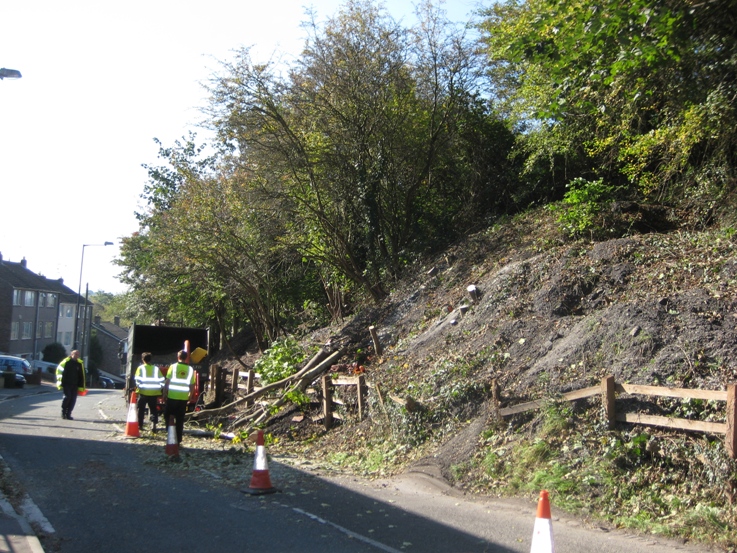 problems of over-hanging trees and earth falls along Troopers Hill Road.