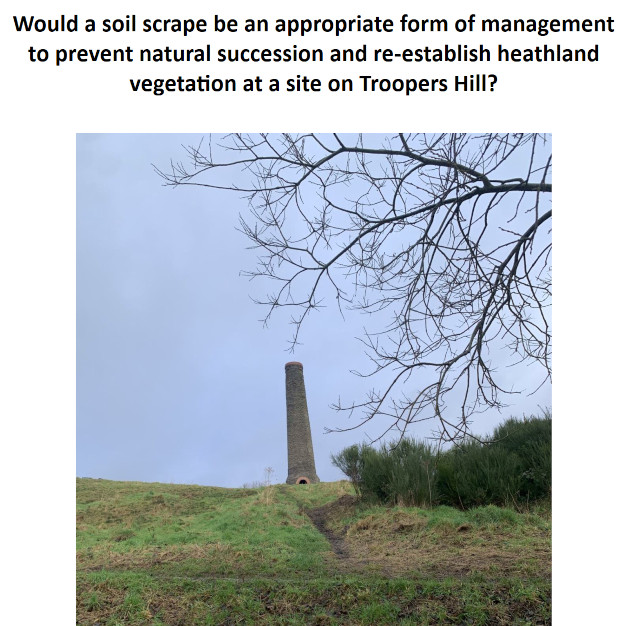 viability of a soil scrape as a form of heathland management at Troopers Hill, Bristol and examines