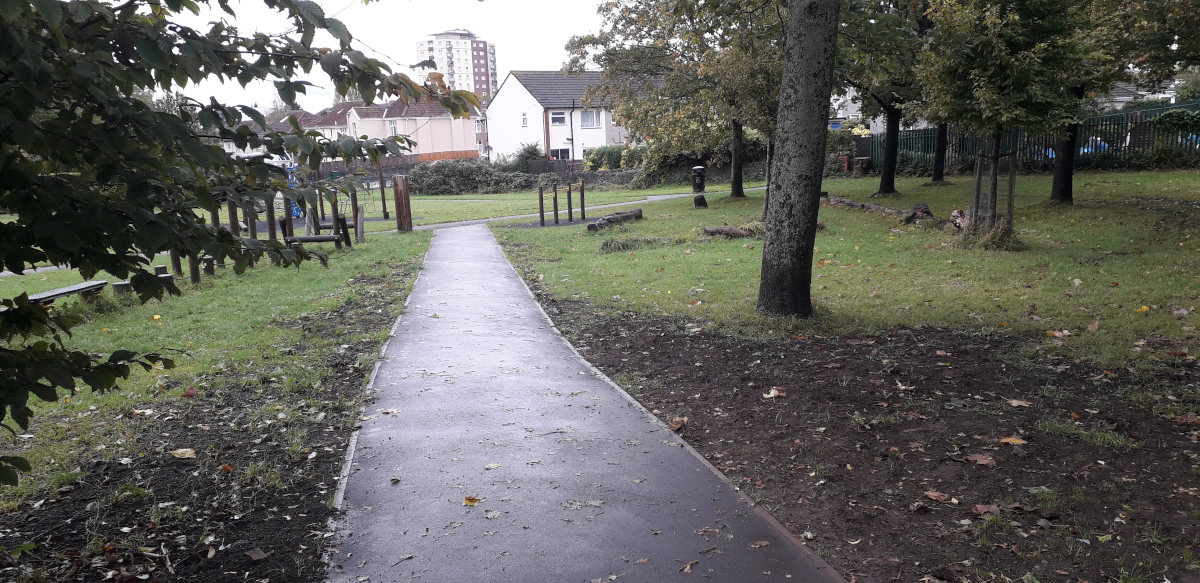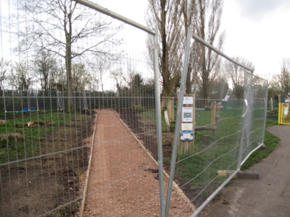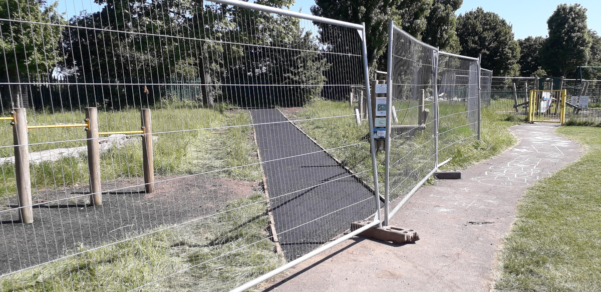 Prior to the work starting, the 1980s red slide adjacent to the route of the path had to be removed due to rust making it structurally unsafe. We ran an appeal for funds to replace it, read more here.