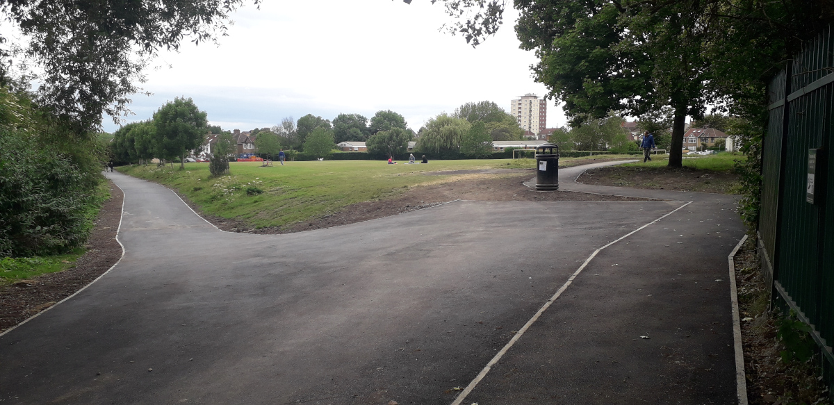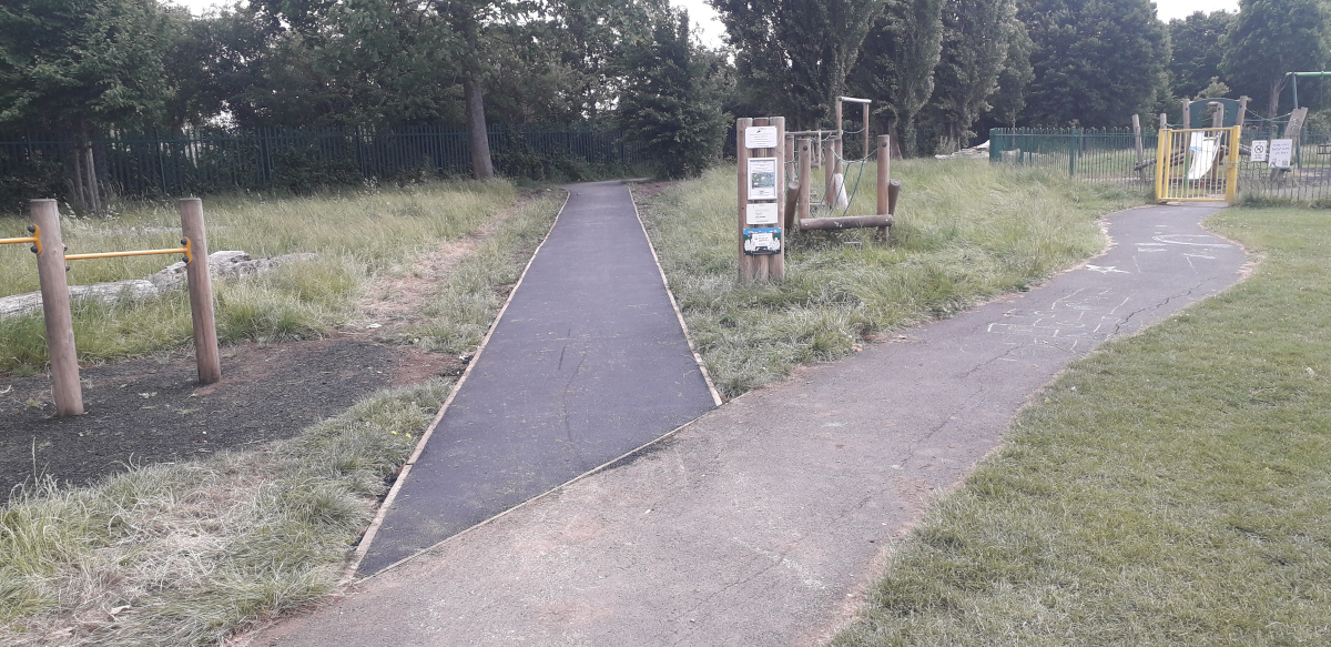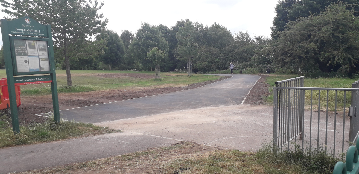 c) Install a new tarmac path on the east side of Troopers Hill Field connecting the new path to the children’s play area to the wheelchair accessible path to Troopers Hill. - Completed