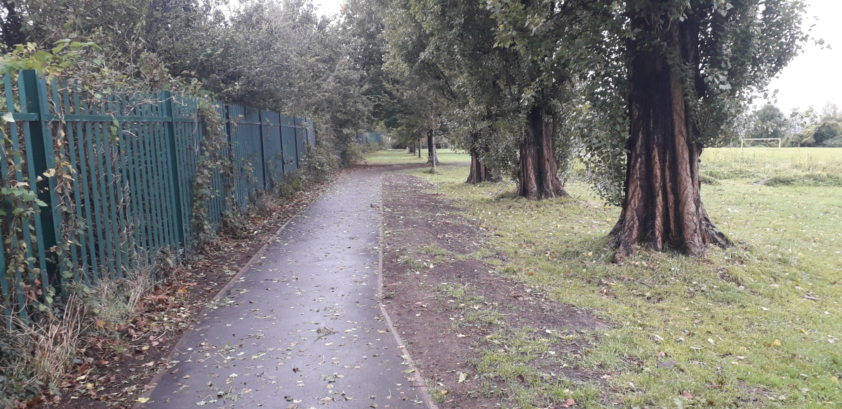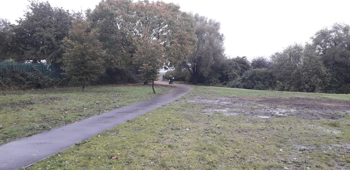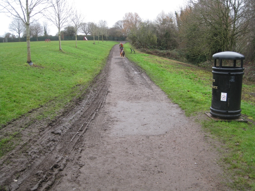 At the end of the track park maintenance vehicles (including those regularly emptying the bins) need to turn, this was making this area particularly muddy.