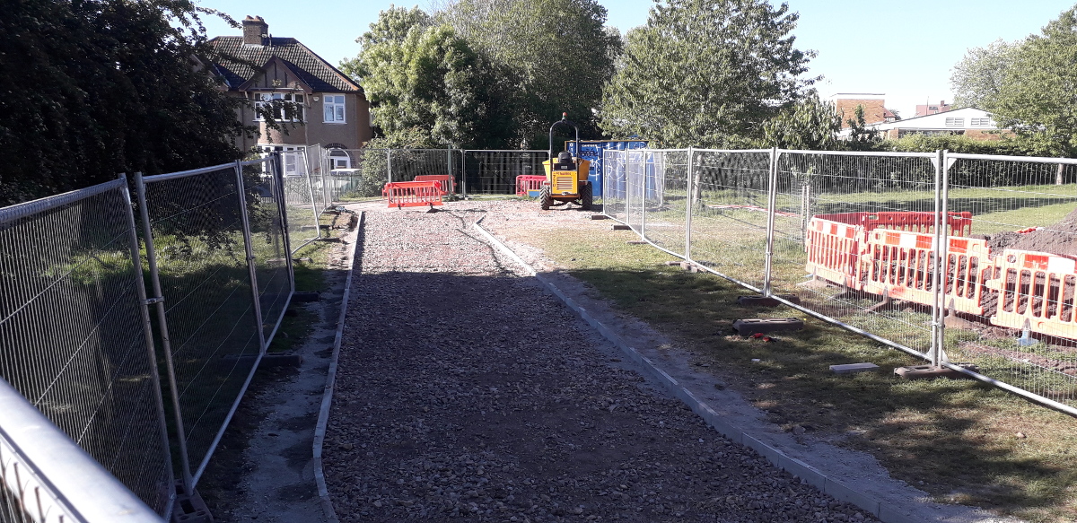 Works to Malvern Road end of track, final kerbs 19th & 20th May 2020