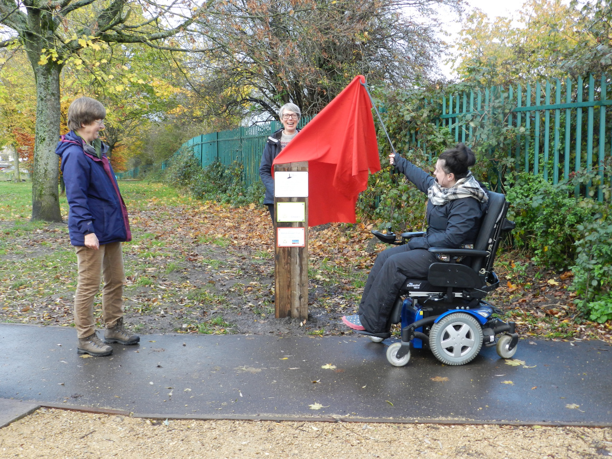 Local resident, Lizzy Horn, unveiled plaques acknowledging our funders - using a ceremonial litter picker.