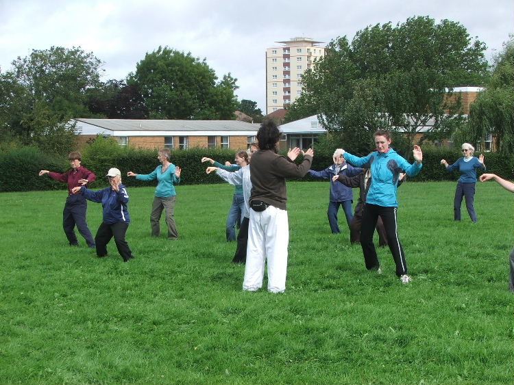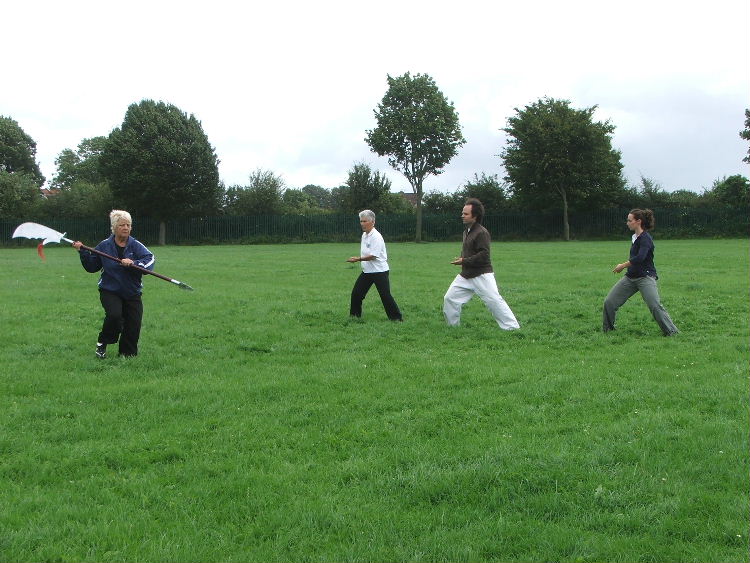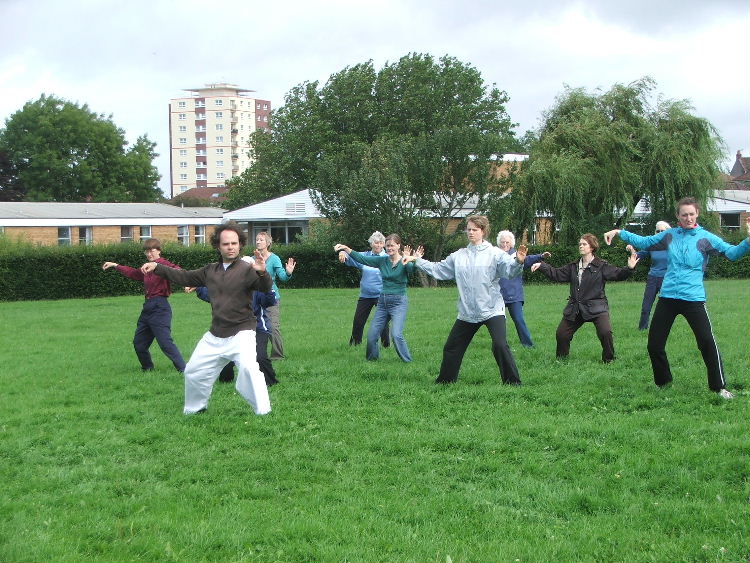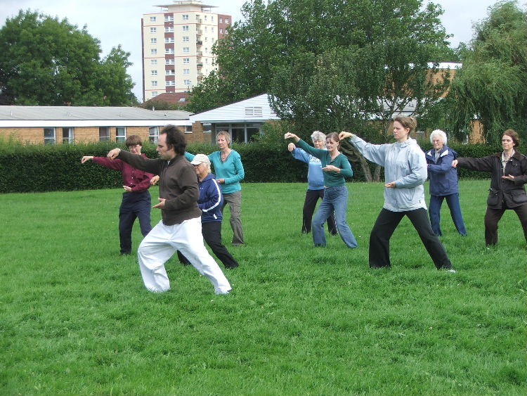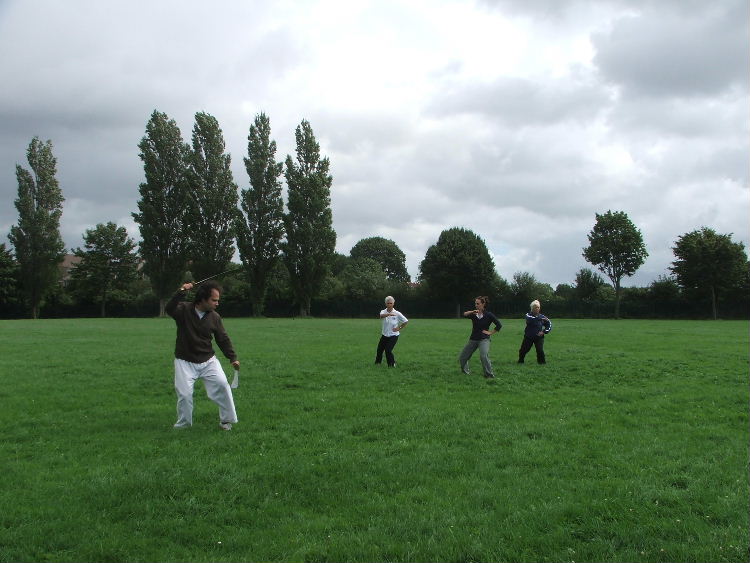 A heavy shower just before we were due to start failed to dampen the enthusiasm for the final Tai Chi session on the Field for this year. Although it was windy and the grass was wet the weather stayed dry while Sunya (replacing Ben as instructor for this session) took us through another set of moves. Afterwards we had an unexpected demonstration of some more advanced moves from Sunya and three of his colleagues.