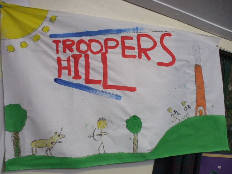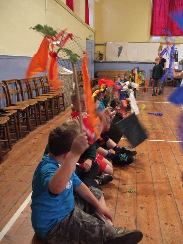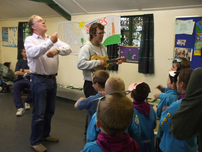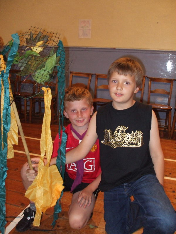 In preparation for Trooping the Hill on 28th June we held three evening sessions with the beavers/cubs making masks, instruments, giant stawberries, jurassic dragonflies and streamers...not to mention learning all the actions to all the songs! Meanwhile the Scouts were preparing their own part of the event. There was also an interview with Radio Bristol.
