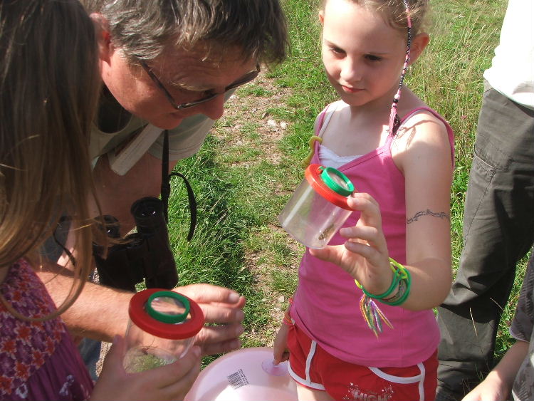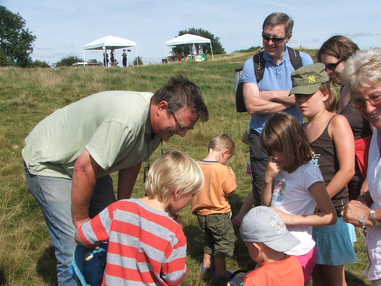 See the Bugs & Beasties 2009 Video >>After last year's wash out and a very wet July, we were especially pleased to have perfect weather for this year's Bugs & Beasties event. Rupert Higgins again led an ethusiastic group of children armed with nets and bug pots to find some of the Hill's smallest inhabitants.