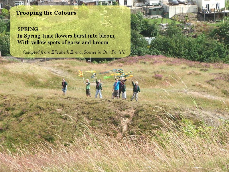 ![]() | Words by Martin Maudsley based on ideas from the 159th Bristol (St Aidan's) Scout Group as part of the 2008 Trooping the Hill ceremony. Trooping the Hill was funded by the National Lottery through Awards for All and supported by Bristol Parks through the Nature in the City Project. |