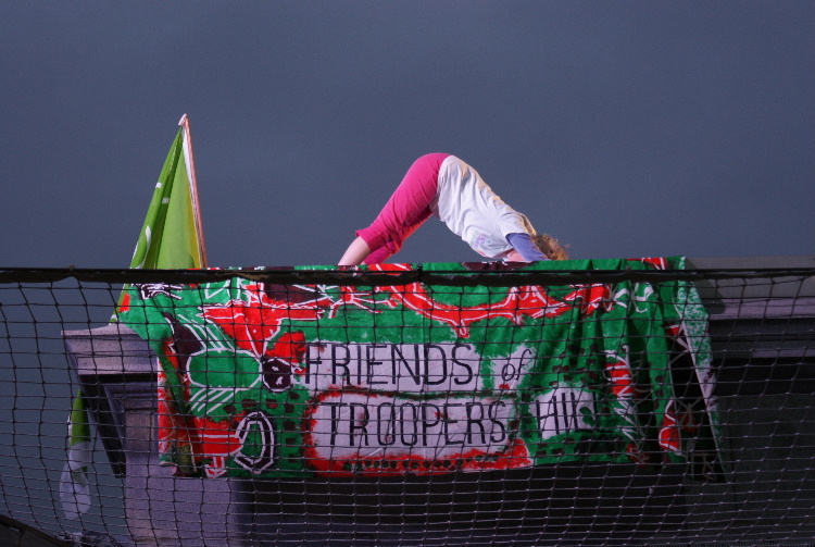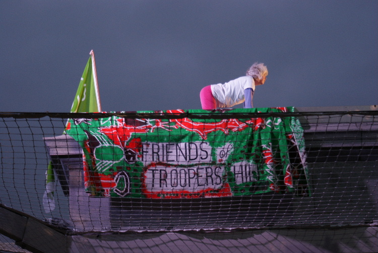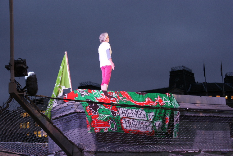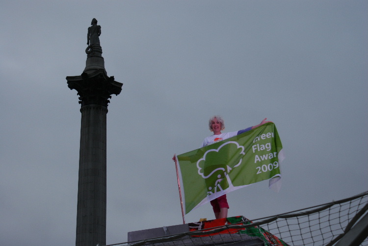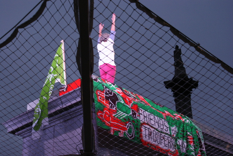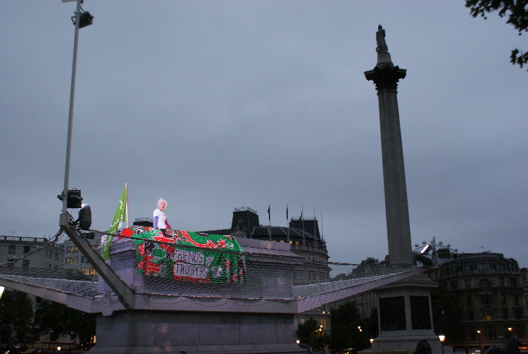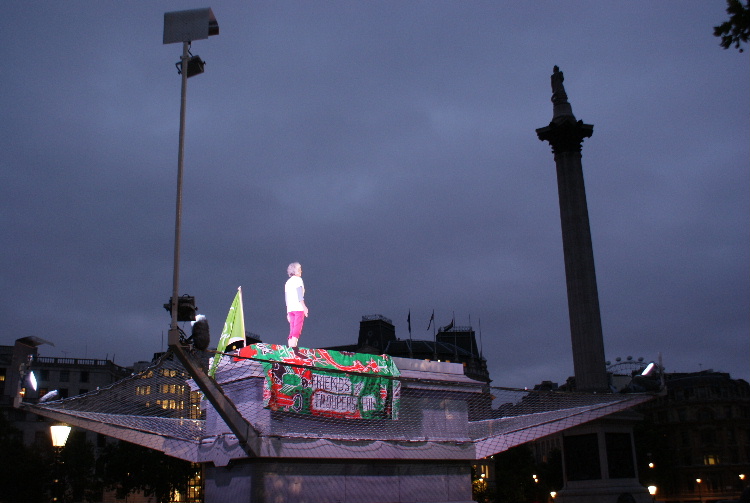 Click here to see the video of all of Helen's hour on the plinthClick here to see 4 minute video highlightsOn Tuesday 4th August at 5 am our Secretary, Helen, took her place on The Fourth Plinth in Trafalgar Square as part of Antony Gormley's One & Other project. Antony Gormley, previously best known for his Angel of the North sculpture, conceived the idea of having a succession of real people take their place on the plinth for one hour each and for a total of 100 days. Helen was chosen as one of the 2400 successful applicants out of over 30,000 that have so far applied. Helen was thrilled to be picked. As well as promoting the achievement of a third green flag, Helen devoted the hour on the plinth to a yoga practice devised with the advice of yoga instructor Sally Davies. Helen also displayed FOTH's unique cloth, which was specially created for them by children at Air Balloon Hill Junior school in 2005. In addition to being featured on SkyArts on Friday evenings at 7 pm, the plinth is watched live by viewers around the world on the project website, so Helen took awareness of Troopers Hill far beyond East Bristol and to a global audience. The project's website has now been archived at www.webarchive.org.uk. Helen was also featured on Radio Bristol and in the Bristol Evening Post - click here to read the article Photographs by Kit: |