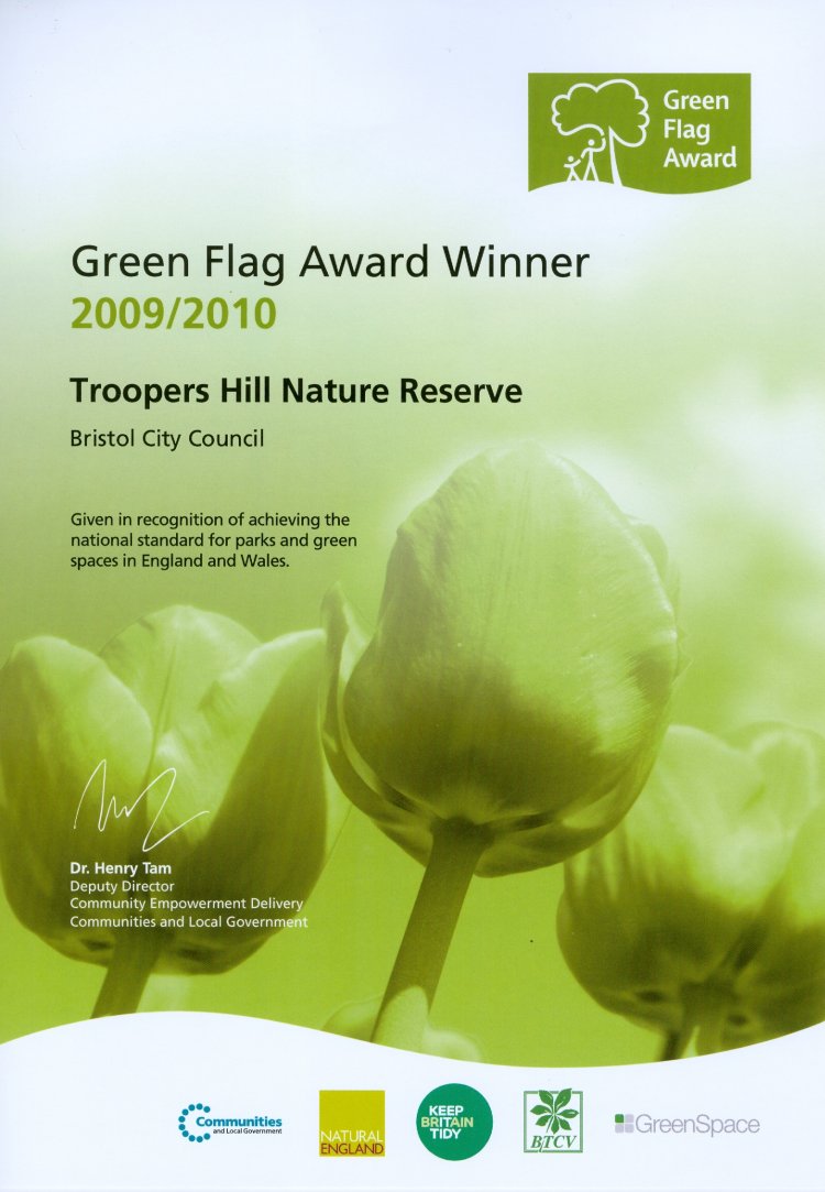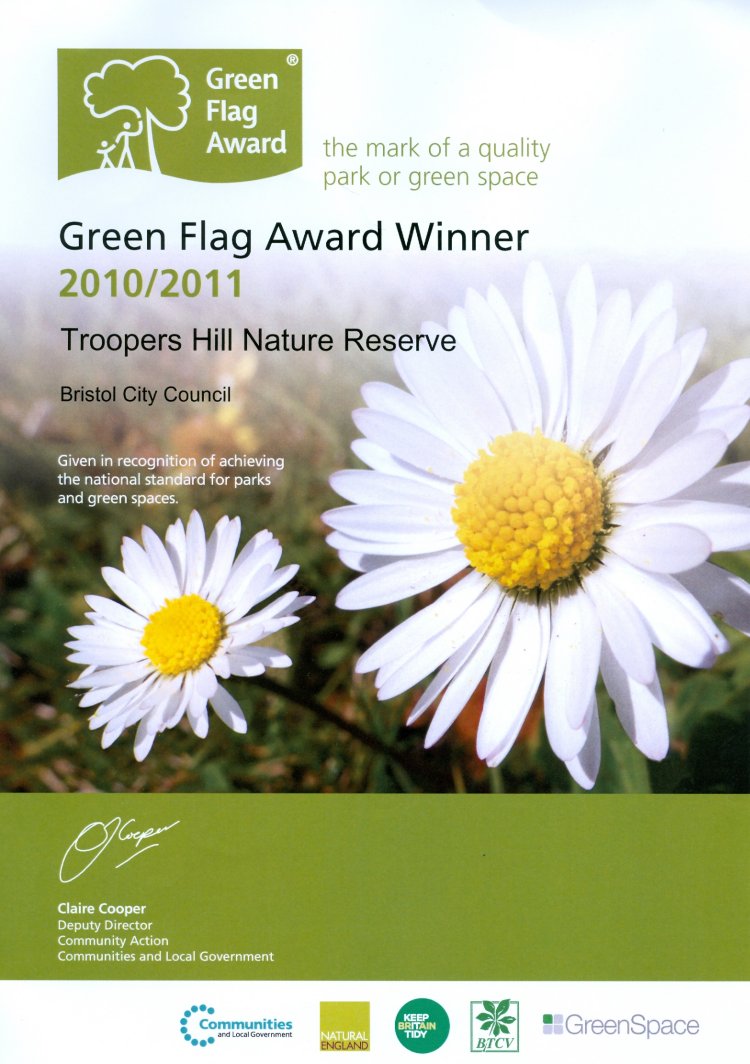 Troopers Hill Green Flag Award 2010/11 Certificate