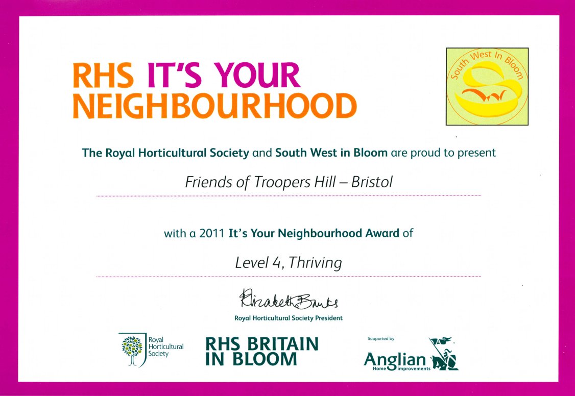 RHS It's Your Neighbourhood Certificate 2011 - Level 4, Thriving