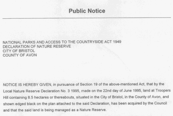 22nd June 1995 Declaration of Troopers Hill as a Local Nature Reserve