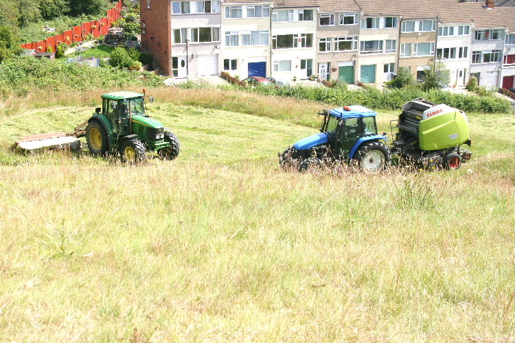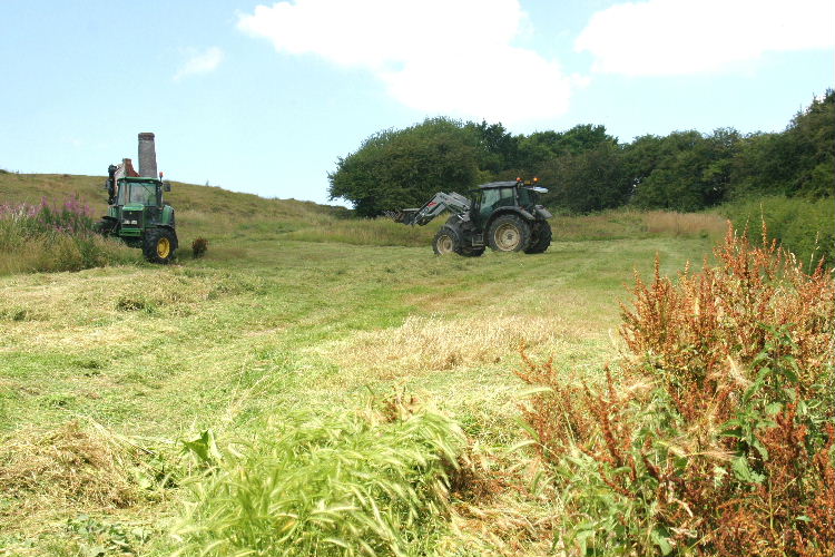 As part of the Management Plan (Objective 7.2.3.1) the area of grassland at Greendown is cut as a 'hay meadow' with the grass cut and removed in July or early August each year. This is part of 'compartment 2' and the aim over the last few years has been to increase the area that can be cut as a meadow by reducing the amount of bramble. Removing the arisings helps prevent the soil becoming too rich as it would if the grass was cut and allowed to compost on the site. Cutting in July should give any flowers the chance to seed before being cut.