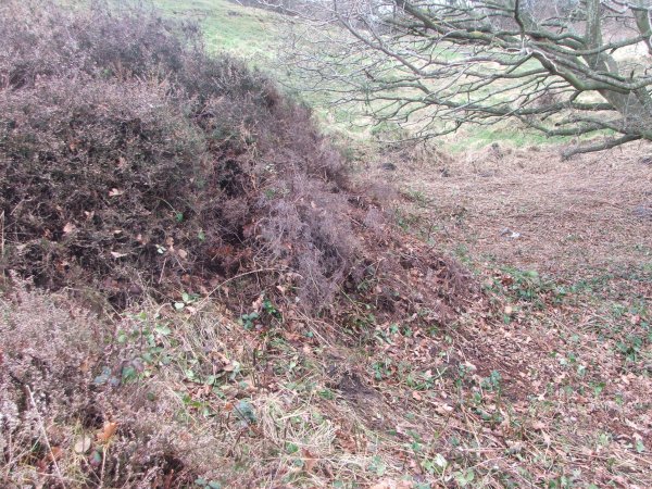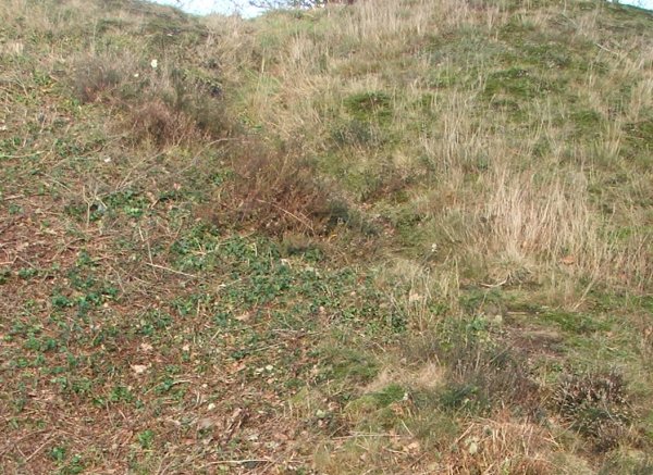 The two photographs below show the heather at the edges of two of the areas cleared during the winter 2008/09.You can see that there is dead heather that has been uncovered by the clearance. Both these areas of bramble and scrub were spreading and covering more heather each year.