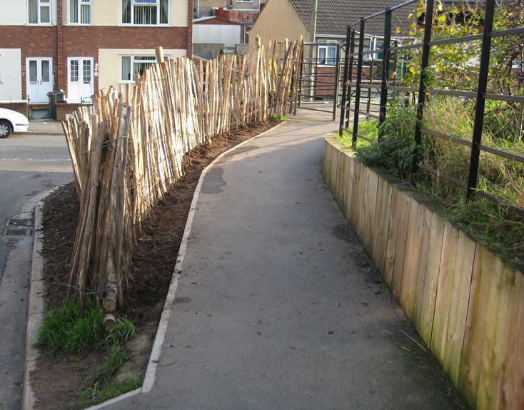 This work was managed by Bristol Parks and constructed during the summer of 2009. The kissing gate is designed to allow access for child buggies while keeping out motorbikes.
