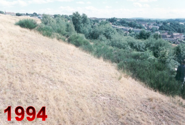 As can be seen from the 1996 photo, this area of broom scrub was severely affected by the 1995 fire. It did not recover fully until 2002 by which time it was as large and as dense as it had been in 1994.