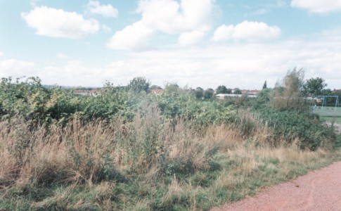 No 3 The entrance from Troopers Hill Field. The knotweed was treated in 2005 and 2006 and so has died back. Note how much the trees and shrubs have grown by the entrance, the corner of the swing frame can only just be seen in 2006. |