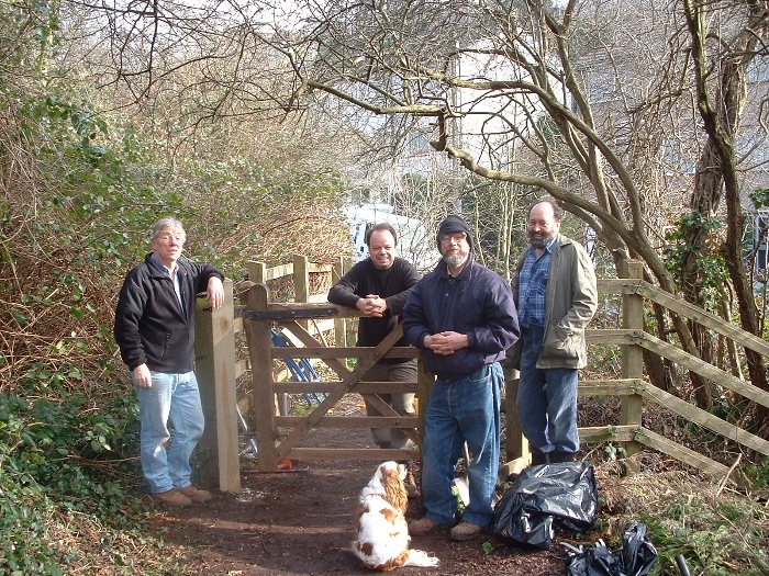An additional Work Party was held on the second Saturday of February to replace the gate at the third entrance up Troopers Hill Rd. The old gate post had completely rotted through. Gary, Community Parks Manager for Bristol City Council, supplied a new post and to our amazement we found that it fitted in the concrete socket once the remains of the old post had been removed. We were therefore able to re-hang the gate on the same day. The end result is shown here together with the happy workers.