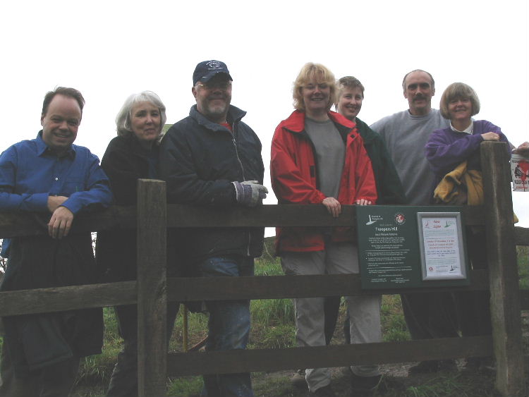 Following on from a litter picking session in October and fence mending in December. 2004 began with our volunteers applying wood preservative to the fence at January's work party which was held on the 10th, a week later than usual to allow for recovery from New Year hang-overs. Thanks to the resident of Greendown who supplied the coffee and biscuits.
