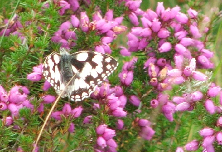 Another hot day and the hill was really looking good with the heather in flower and lots of grasshoppers and butterflies around, the marbled white was particularly common this weekend. The main task was to clear litter and dog-mess ahead of the evening's Music on the Hill event. A small group also cut some holm oak and other saplings that had appeared in the grassland. We were pleased to see that Bristol Park's contractors had cut down the large holm oak in Crews Hole woodland. The report accompanying the 2004 photographic monitoring had identified this tree as a probable cause of the holm oak appearing on the hill through its acorns being dropped by birds. By following their bird nesting protocol the contractors were able to cut the tree before this year's acorns had matured.