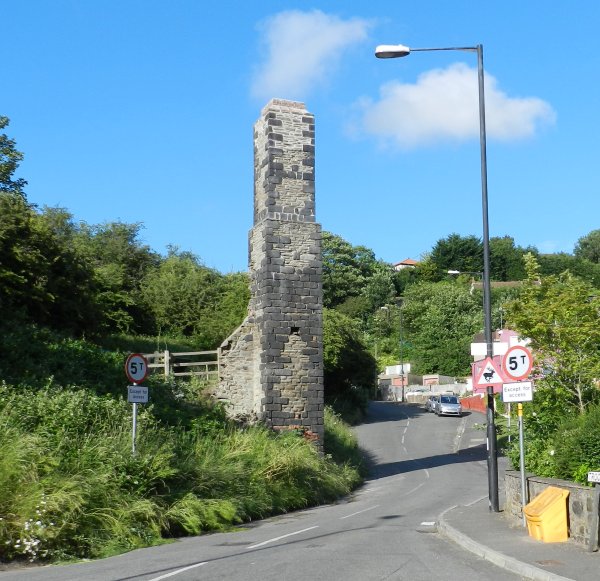 The one at the top of the Hill dates from the 1790s or earlier and was built to serve a copper smelting works by the river (or possibly an earlier leadworks); a duct or flue ran up the side of the hill to the chimney. It was later used by a chemical works until falling out of use around the time of the First World War.
