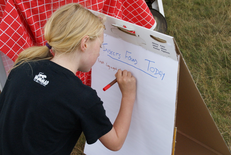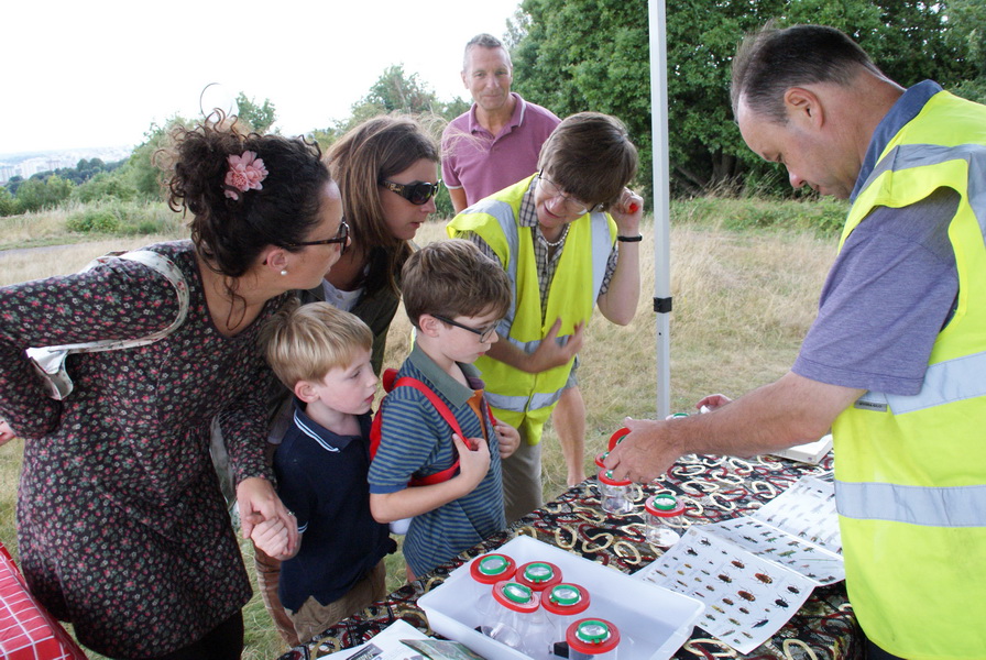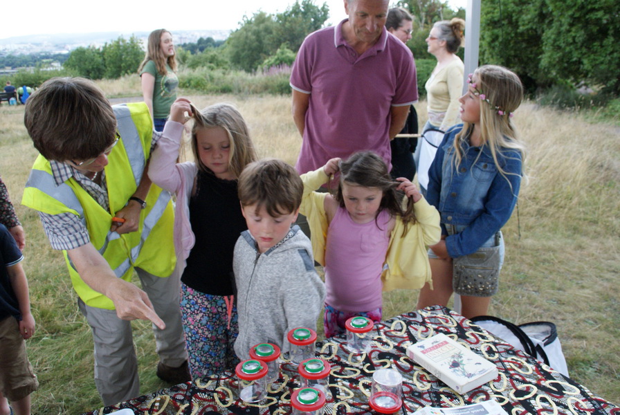 A very enjoyable afternoon on the Hill with lots of children catching a range of bugs and taking them to Rupert Higgins and Dawn Lawrence to be indentified. Although the approaching storm from the south west prevented the balloons from flying, the showers stayed away until after our event was finished. Finds included five different species of crickets and three different grasshoppers. |