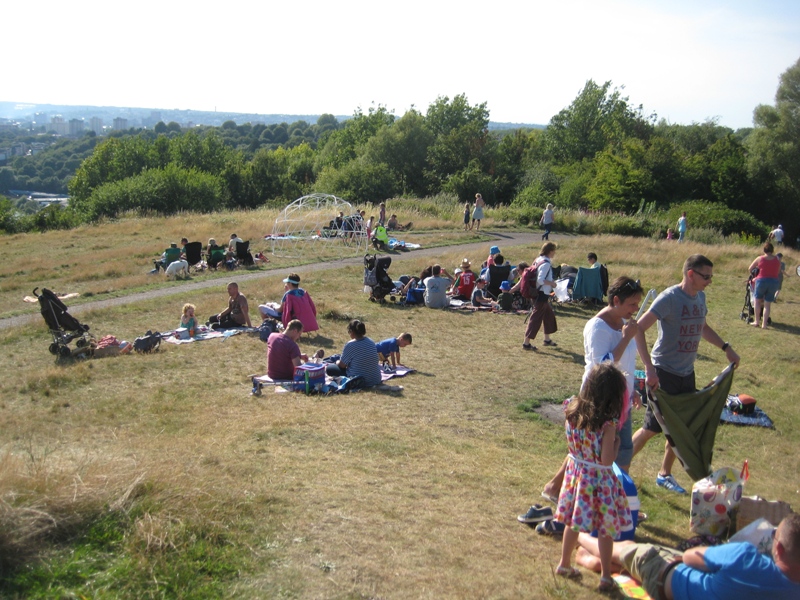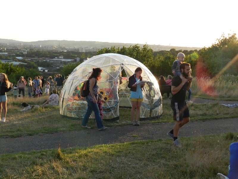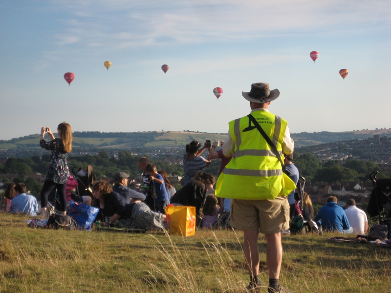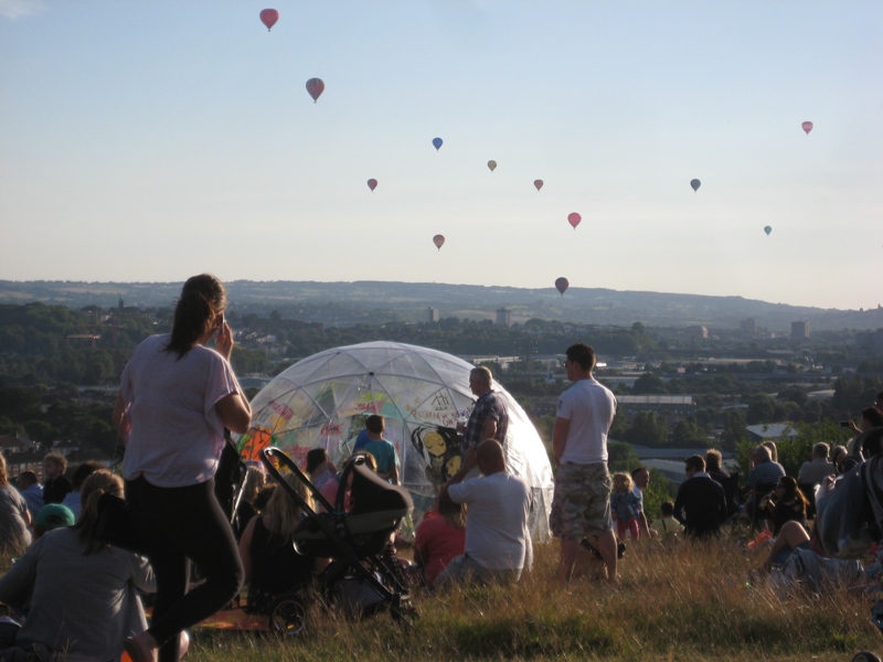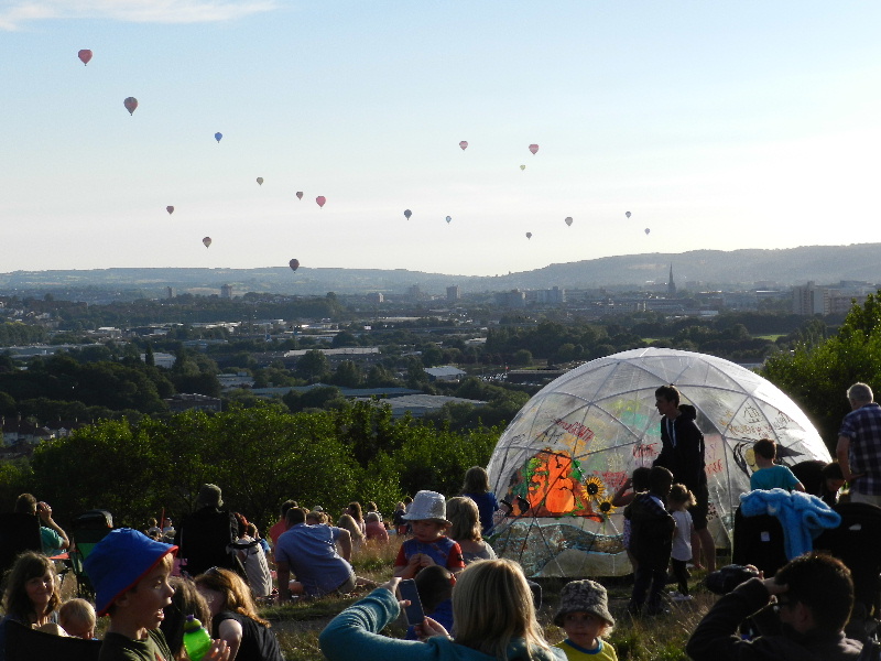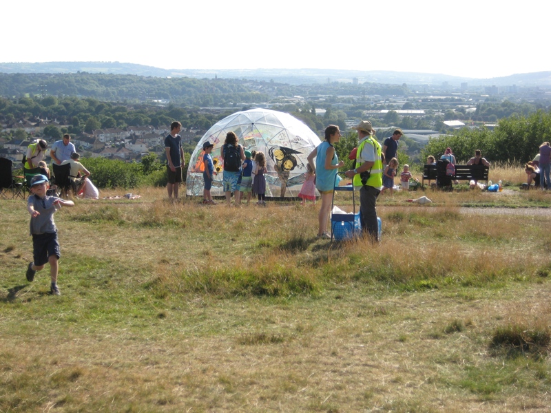 On the Saturday of the Balloon Fiesta we held what has become an annual hunt to find some of the Hill's smallest inhabitants. Rupert Higgins & Dawn were again on hand to indentify your finds and explain why they find Troopers Hill such a great place to live. As an extra bonus this year Bristol Astronomical Society joined us to do some solar observations. We were also joined by the one day : Day One resilience dome which is visiting various sites arounnd Bristol during Green Capital Year. Afterwards we were treated to the wonderful sight of the balloons flying past from the Balloon Fiesta at Ashton Court. With near perfect weather and stories of traffic jams on the approach to Ashton Court this was the largest crowd of people we have ever seen on Troopers Hill. During the afternoon Isabelle chose to capture creatures (mostly butterflies) with her camera rather than a net and container and got some great shots of them amongst the Hill's heather & grassland. She also got some excellent shots of the balloons. You can see a drone in one of our photographs, some of the film it shot can be seen via the link below: See video filmed on the day from a drone >>Supported by the St George Neighbourhood Partnership Bristol Green Capital Fund Find out about other walks & events in St George in 2015 >>Temporary toilet facilities funded by Friends of Troopers Hill and provided by Mendip Toilet Hire |