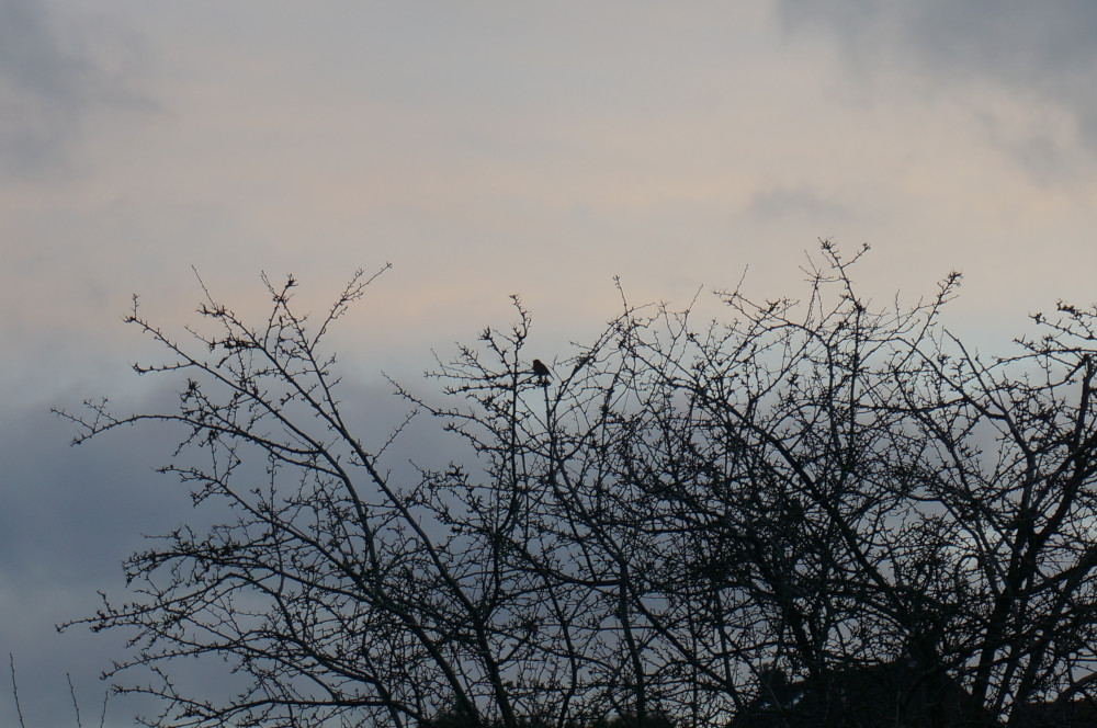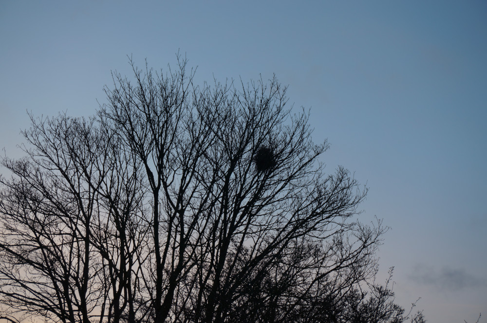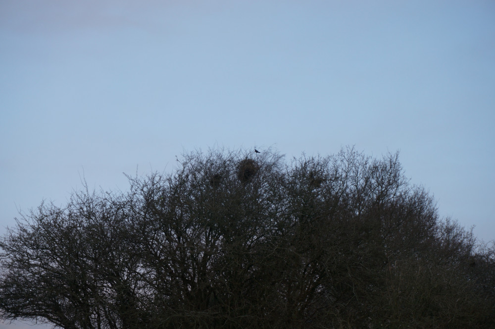 As we moved around the Hill and the light increased the extent of sound noticably dropped, but we were then able to see some of the birds. Magpies were building nests, a heron flew overhead and blackbirds and robins perched on branches.