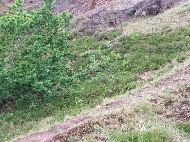 This was the area around the oak tree in the gully on 18th June. You can see the many small saplings, these had all grown since our first holm oak hunt in Feb 05.