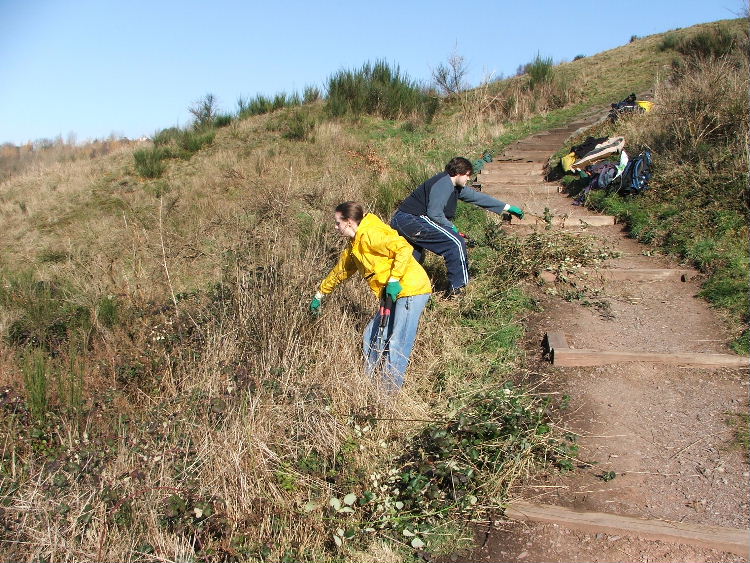 The broom will soon give us a display of yellow flowers to repay our efforts for clearing the bramble.