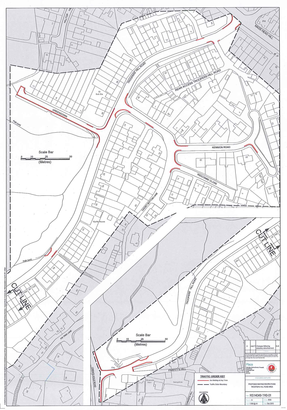 There were three separate sections to the TRO - parts A, B & C. For Troopers Hill Road part A was for parking restrictions and part C was for speed humps etc, you need to look at both to get the full picture. Part B was for other parking restrictions in around the Kingsway.