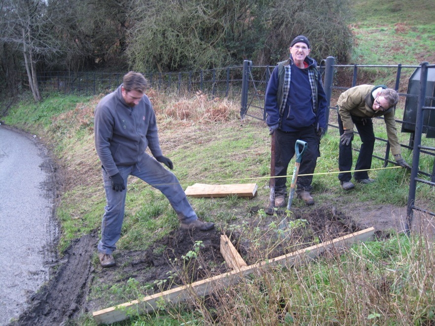 The wide track, leading from Malvern Rd, into the Field, was just compacted stone dating back to at least the 1970s but was showing its age. We were contacted by one visitor in 2016 who told us the track was now too difficult for him push his wife along in her wheelchair.