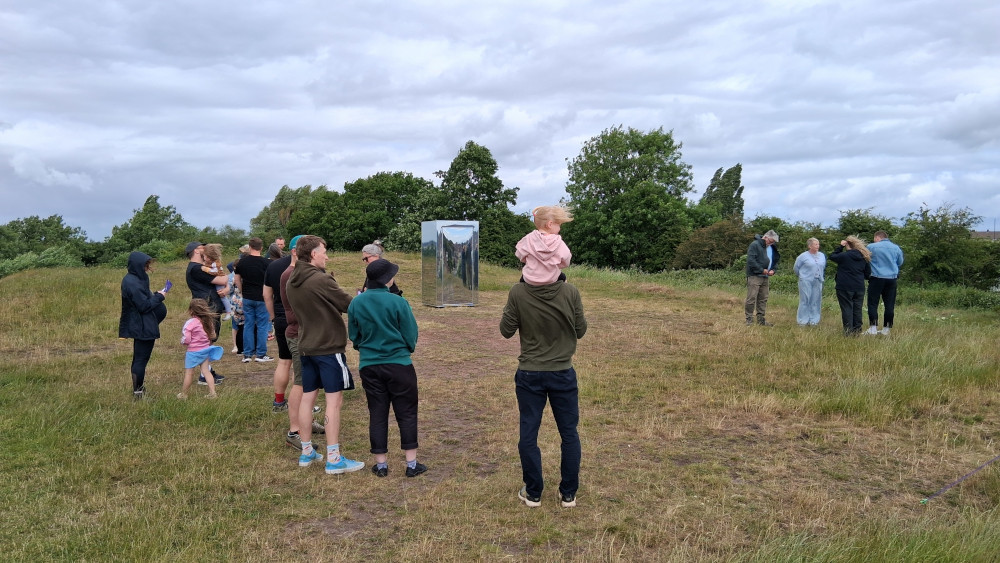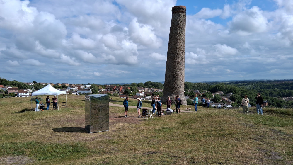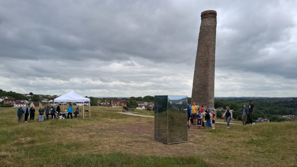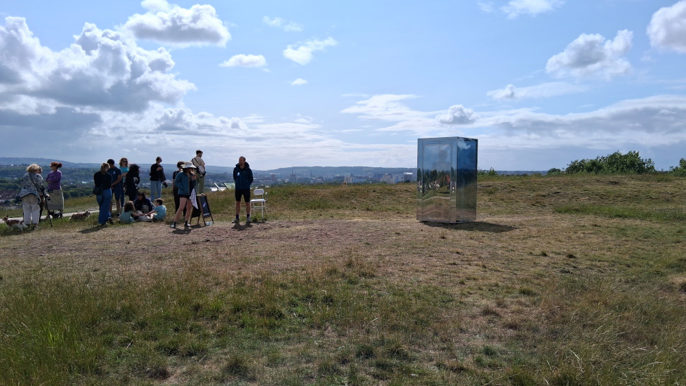 On a very breezy day, the Mirrorbox was placed on the Hill near the chimney, to one side of the paved access path. Throughout the day there was a steady stream of visitors queuing to hear Lizzy's moving message describing why she loves Troopers Hill so much and why she would be here if she could.